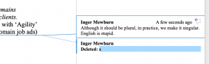 私は指導教官としては、文法の 「ルール」 についてはかなり寛容です。文法のルールなど人が作ったものなのですから。むしろ私は、文法的に正しいことより「社会的に正しい」文章を学生が書くお手伝いをします。「社会的に正しい」文章 とは、想定される読者の期待に沿う文章という意味合いです。