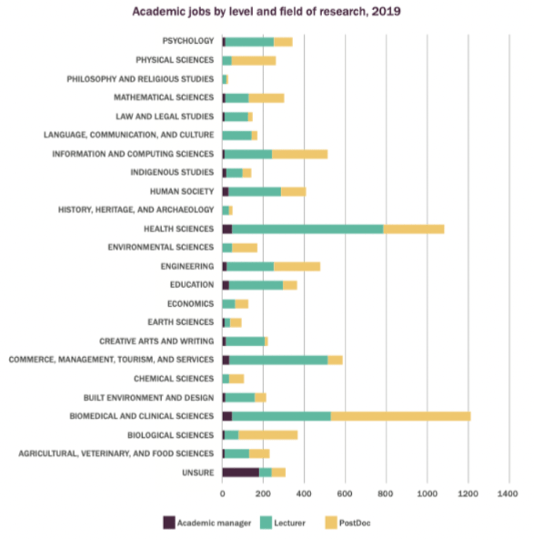 研究職の求人広告に関する私の初期の研究は、レイチェル・ピット博士(Rachael Pitt)と協力して行った研究で、これをまとめた論文「Academic Superheroes」は、私の論文の中では最もダウンロード(そして引用)回数の多い論文となりました。2017年以来、私はANUの同僚のハンナ・スオミネン(Hanna Suominen)准教授とウィル・グラント(Will Grant)准教授と共に、ANUが運営する学外の研究職を紹介するサイト「PostAc」プロジェクトを通して学外の求人広告を見てきました。